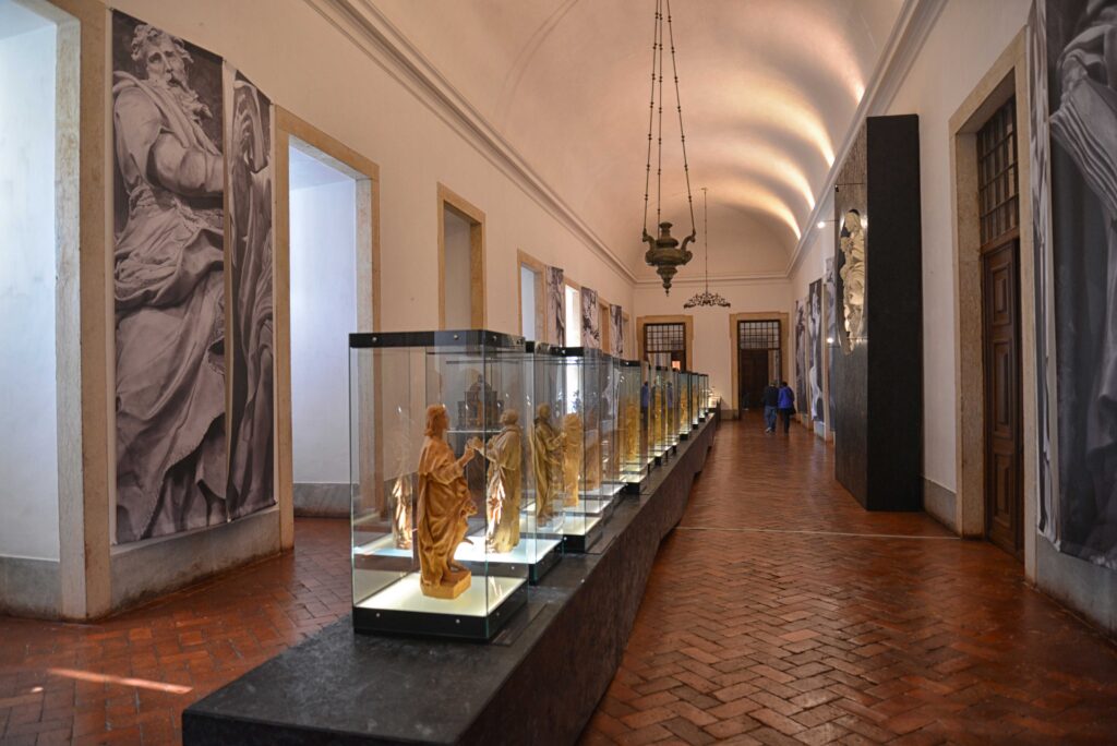 Atualmente aqui se mostra uma coleção de modelos de escultura em terracota, pertencentes à encomenda régia de D. João V para as 64 estátuas e baixos-relevos existentes na Basílica (1728-1730). Expõe também, um grande medalhão em madeira, do escultor José de Almeida, representando a Virgem Maria com o Menino e Santo António, destinado a figurar provisoriamente no frontão da Basílica do Palácio para a sua Sagração, a 22 de outubro de 1730.